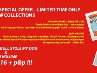 PRE-CHRISTMAS SPECIAL OFFER – LIMITED TIME ONLY 2 BRAND NEW COLLECTIONS : PSYCHO SEAGULL STOLE MY DOG A4, fully illustrated, full colour. Performance poems based on headlines, clickbait, cliches and more with fantastic visuals from […]